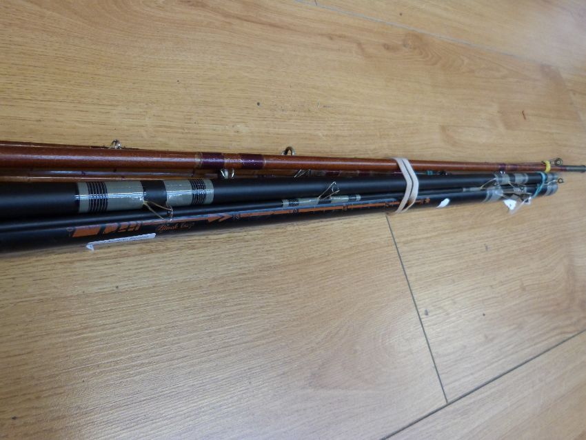 Three fishing rods including a Milbro