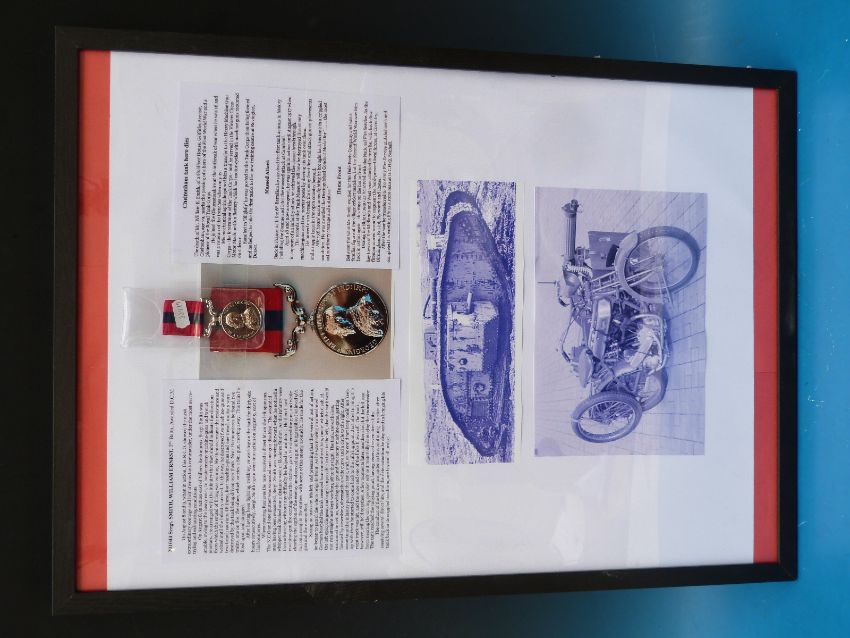 A Distinguished Conduct Medal replica and display relating to 201044 Sergeant William Ernest Smith, including Tank Corps