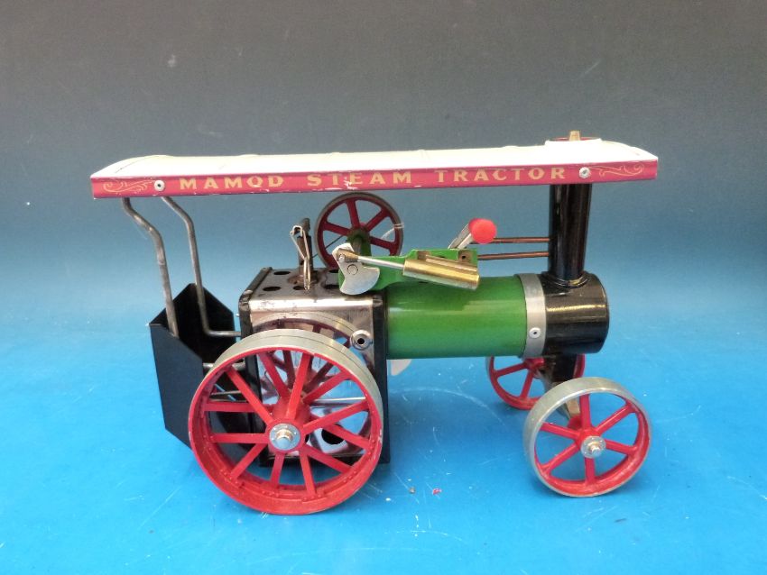A Mamod TE1A traction engine c1960 with water level plug and poppet construction with box and steering column, with reversing lever