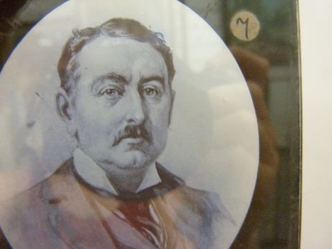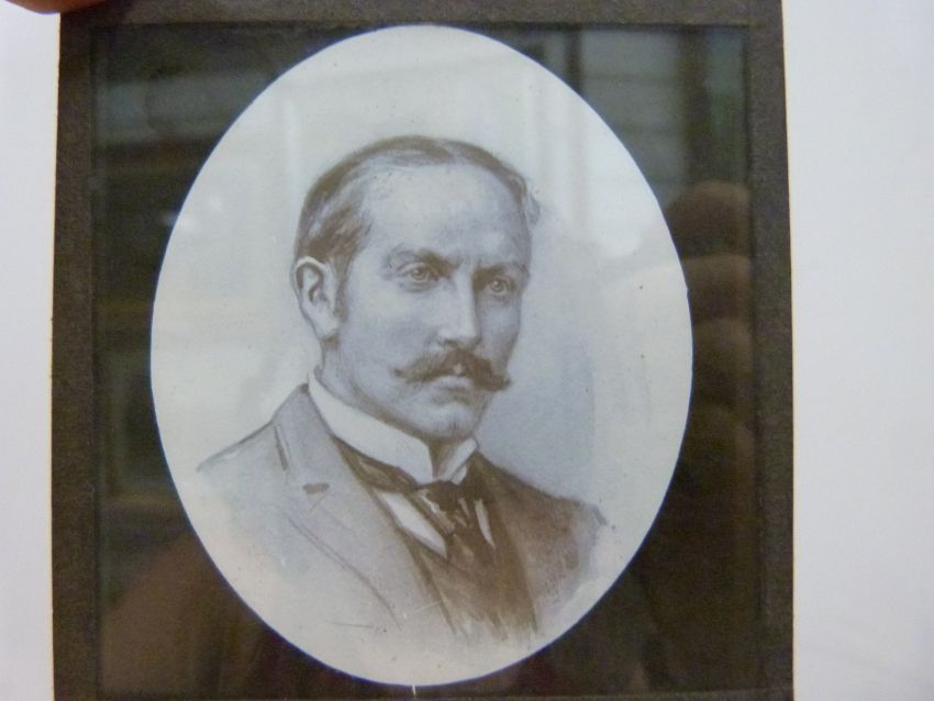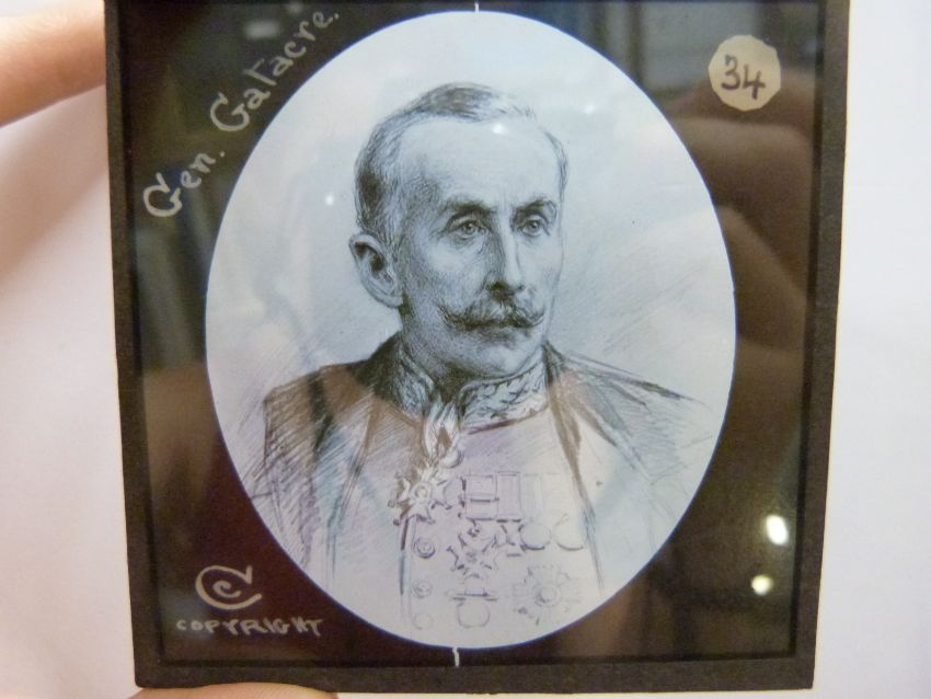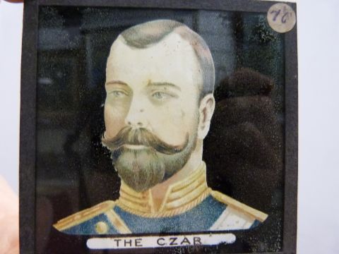 A collection of coloured slides depicting famous people of the late 19thC to early 20thC including Queen Victoria, Field Marshall Sir J. French and Queen Mary together with some black and white examples