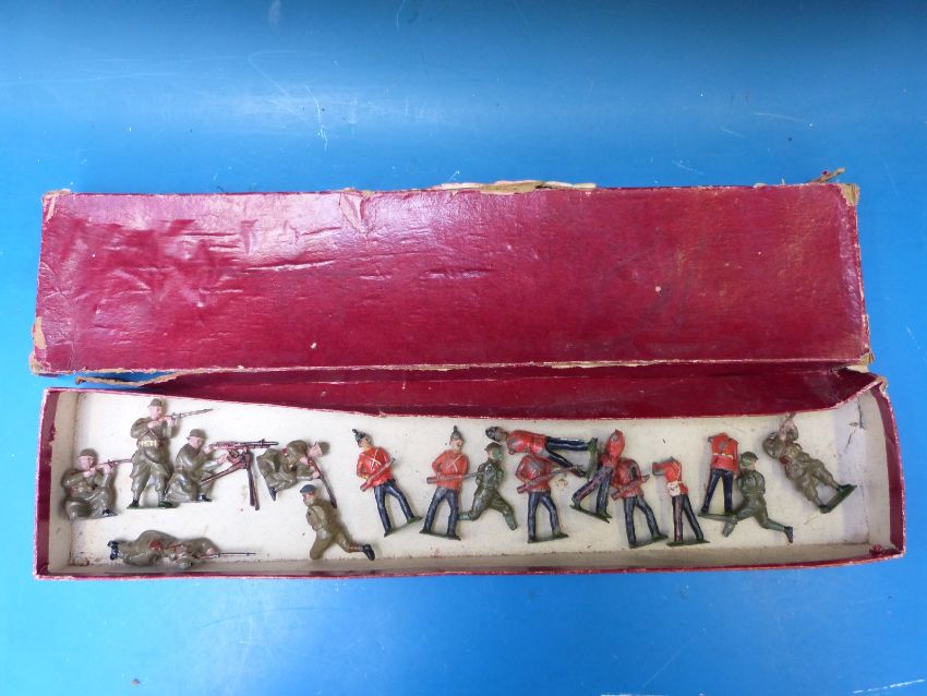 Britains lead Soldiers, five mounted examples and 17 foot soldiers etc, in boxes