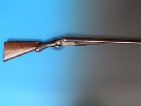 A Duerden 12 bore side by side shotgun, serial number 19856. PLEASE NOTE THAT A VALID RELEVANT FIREARMS/SHOTGUN CERTIFICATE IS REQUIRED TO HANDLE/PURCHASE THIS ITEM.