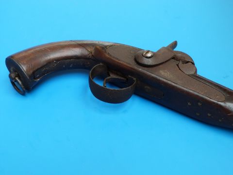 A percussion pistol with flared and reeded barrel circa 1840.