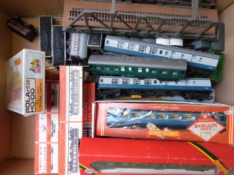 A collection of 00 gauge railway rolling stock to include LNER, BR and other goods wagons and a goods set, some boxed, together with a quantity of Airfix kits including locomotives