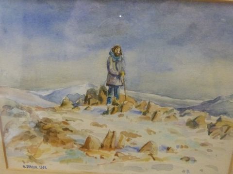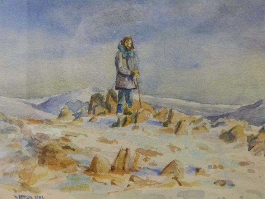 Roger Deacon: Watercolour "High Spy, Cumbria" (12cm x 16.5cm) in gilt frame