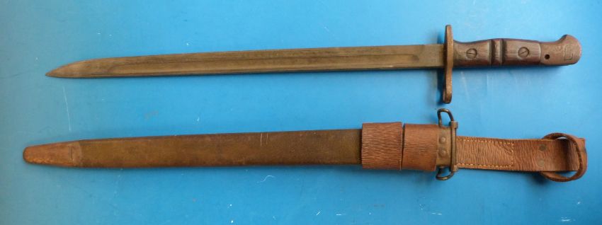 A 1917 US bayonet marked to blade with W, 1917 and US, in scabbard