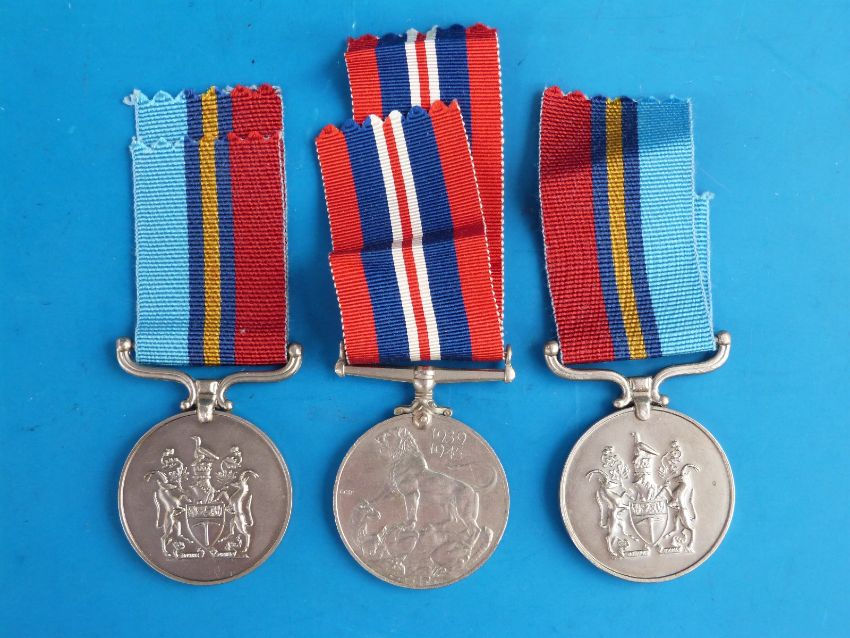 Two Rhodesian General Service medals awarded to 189198Z. G.D.P. Douglas and 007854L G.D.V. Alfred and a possibly unrelated WWII medal