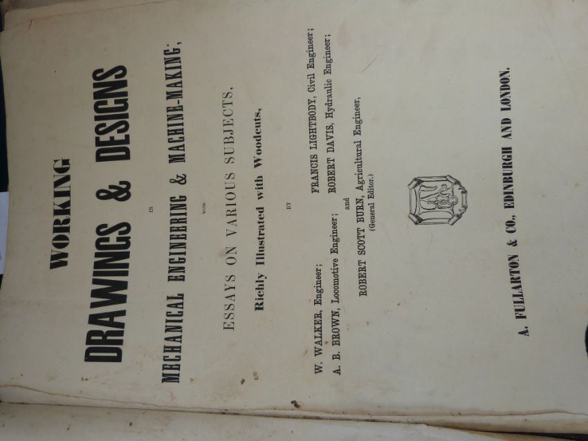 Working Drawings and Designs in Mechanical Engineering and Machine-making by A. F. Wharton & Co with around 60 fold out plates, dated 1880 in pen