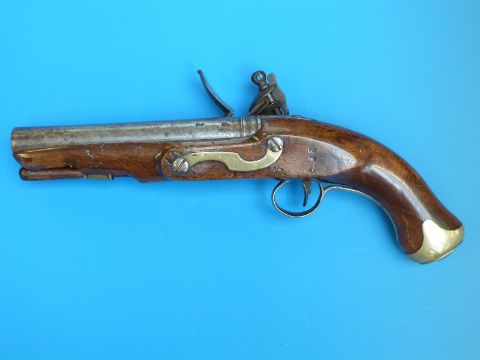 A Barnett flintlock belt pistol with brass mounts, stamped to the stock SP and named to the lock, circa 1820.