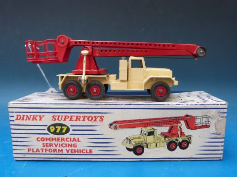 Dinky Supertoys diecast model commercial servicing platform vehicle in red/yellow livery, 977, in original box