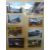 Three framed postcard groups of transport-related items including locomotives and cars, together with a print of an Allis Chalmers tractor, empty frames and advertising