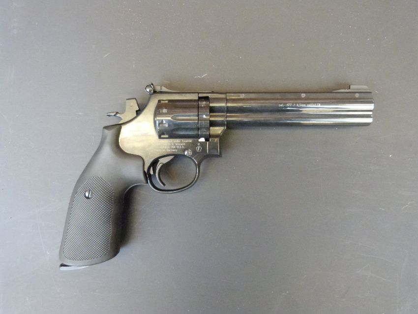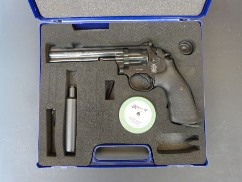 A Umarex .177 Smith & Wesson model 586 replica revolver air pistol SN SO72233979 in fitted case