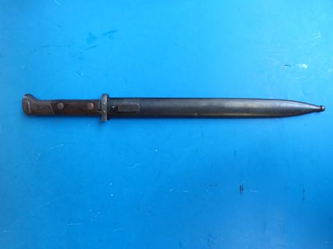 A Czech VZ24 bayonet, blade length 29.8cm, E lion and 24 to blade, 1924 version in scabbard, muzzle ring has been modified