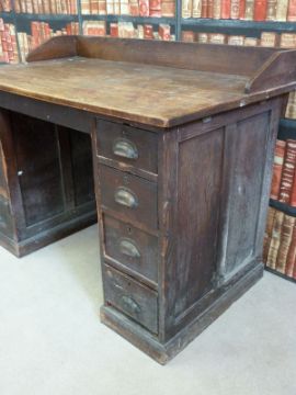 An oak twin pedestal desk fitted four drawers to each side (W121 x D65 x L79cm)