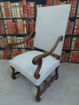 An upholstered oak chair in the Queen Anne style
