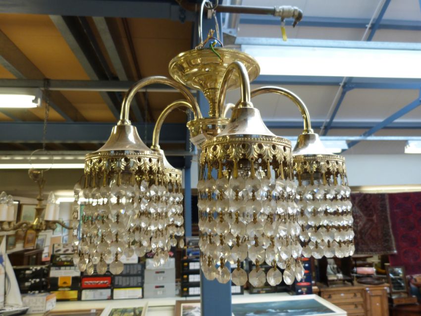A pair of gilt five-branch light fittings and one similar