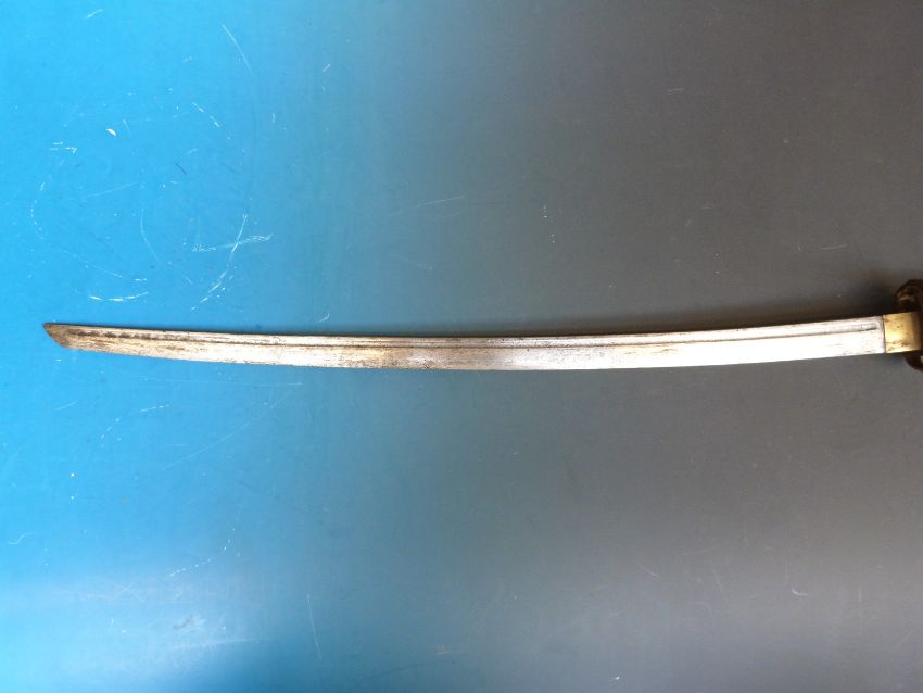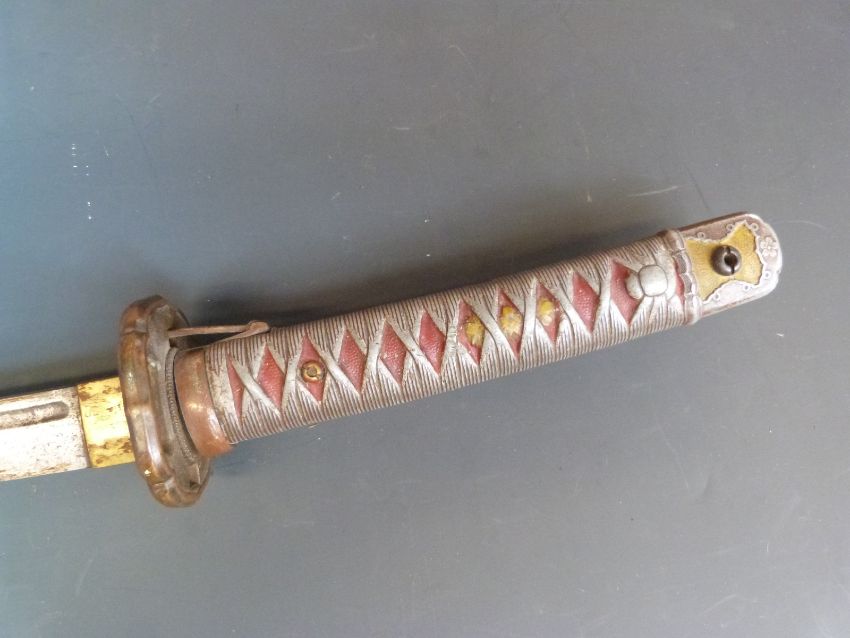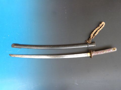 A WW2 Japanese officer's sword in sheath with braided rope lanyard (blade 70cm long)
