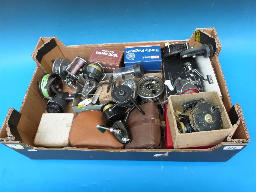 Twenty-six various fishing reels and spools to include Hardy, Leeda Rimfly Magnum, Shakespear Omini-X 2001/070, J. W. Young & Sons, Allcock, Mitchell, Nomann etc.