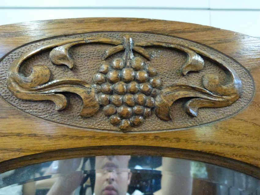 An oak single mirror front wardrobe with matching washstand and chest of drawers