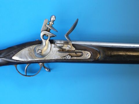 An East India Company flintlock musket with elephant and crown cypher and 'Warrantee' to the lock plate, ELG proof marks and brass mounts, circa 1820.