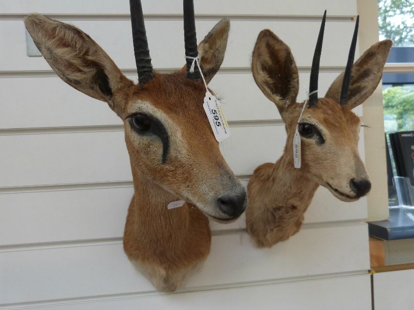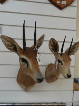 A taxidermy shoulder mount of an oribi together with another of a steenbuck (overall height 120cm)