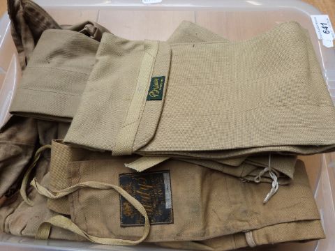 A quantity of vintage canvas fishing rod sleeves including Hardy, Brady etc
