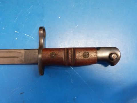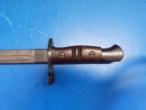 A WWI Remington (1913, 1317 to blade) bayonet. 43cm blade length with scabbard and webbing belt hanger
