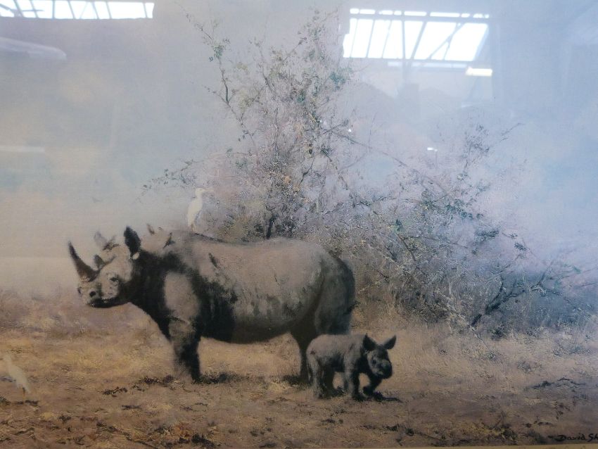 A signed print by David Shepherd "The Rhino's Last Stand" together with another example of an elephant and a quantity of "The Hundred Best Pictures" (37cm x 57cm)