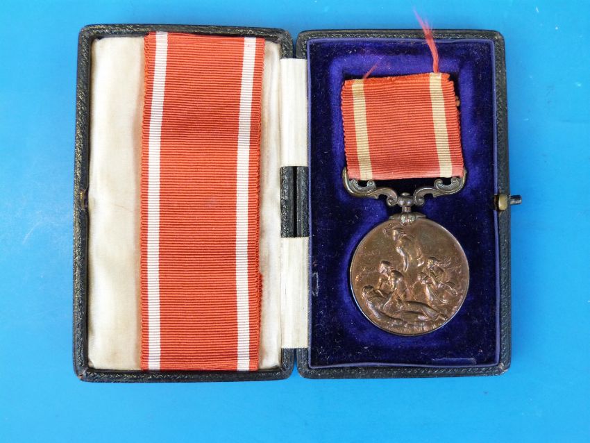 An Edward VI cased Board of Trade bronze medal for Gallantry in Saving Life at Sea awarded to Arthur Lee 'Ennisbrook' 18th October 1908. The medal comes with a letter from the Board of Trade Marine Department stating that His Majesty would present the medal if the recipient were in the country and a further Board of Trade letter and envelope both signed by Winston Churchill and dated 1st February 1910: 'Sir, I have great pleasure in transmitting to you the accompanying bronze medal for gallantry in saving life at sea, which His Majesty The King has been pleased, upon my recommendation, to award to you as a mark of appreciation of your services in endeavouring to rescue Ali Said, fireman of the S/S 'Ennisbrook' of Glasgow, who fell from the gangway into the river Parana when coming on board at Puerto Borghi, Argentine Republic, on the 18th October 1908. It affords me much gratification to be the medium of forwarding this medal to you. I am, Sir, Your Obedient Servant, (signed Churchill)