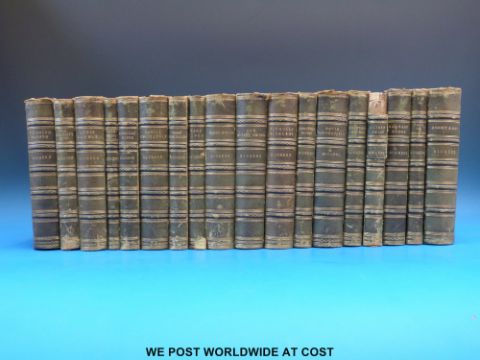 A set of 18 Charles Dickens ( London, Champman and Hall), printed by Virtue & Co. 'The Charles Dickens Edition', leather bound with mottled boards, gilt raised spine