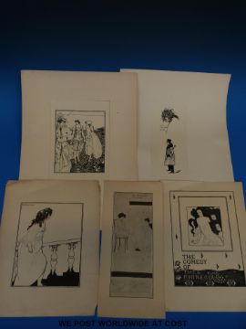 Aubrey Beardsley (1872-1898) Group of five early vellum prints including design for The Comedy of the Rhinegold