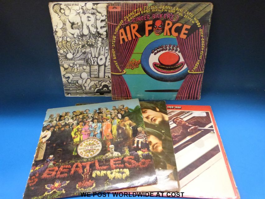 A collection of approximately 30x LPs and 20x EPs and singles which includes two collectable EPs: Rambling Jack Elliott (Collector JEA 5) and Fats Domino “Be My Guest” (London R-EP 1261). The LPs include Rolling Stones “Sticky Fingers” and “Through The Past Darkly”; John Mayall “Bare Wires”; Cream “Wheels Of Fire” (2xLP); “Andy Warhol's Velvet Underground” (2xLP, MGM Select 2683 006); Beatles “Love Songs” (2xLP); two copies each of “The Beatles 1962 -66” and “The Beatles 1967 - 70”; Ginger Baker's Airforce (2xLP). There is some variation to the condition of the vinyl but the majority appears to very good to excellent.