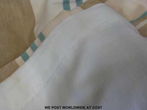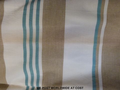 Four Roman blinds (each 120 x 120) together with a matching pair of lined curtains (210 cm drop) all in Romo striped linen fabric
