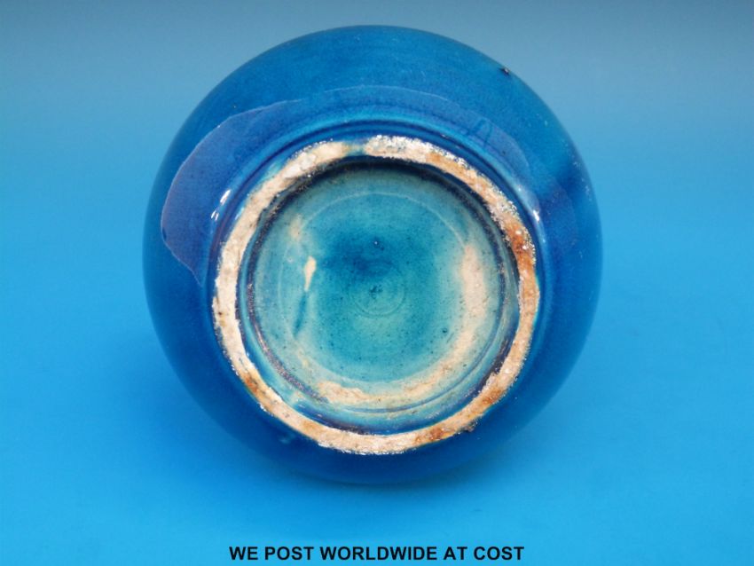 A 19thC Chinese blue monochrome bottle vase (23cm tall)