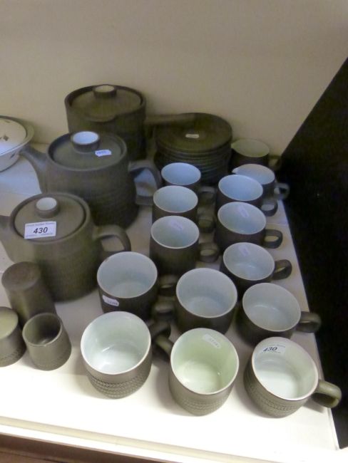 A quantity of Denby green stoneware teaware, cruets etc
