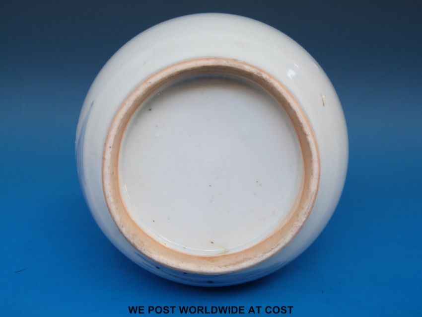 An 18thC Chinese blue and white juglet with knopped neck, decorated with a garden scene(25cm tall)