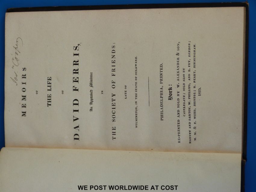 'Memoirs of David Ferris' (York, W Alexander and Son, 1825) together with George Howard, 'Wolsey: The Cardinal and His Times' (London, Sherwood, Jones & Co. 1824) leather and gilt decorated
