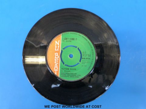 Three rare and collectable reggae 7” singles: Alton Ellis “I Can't Stand It” (Nu Beat NB 010); Harry And Radcliff “History” (Camel CA 26); and Glen Adams “Mighty Organ” (Crab 21). The condition of the vinyl appears to be excellent