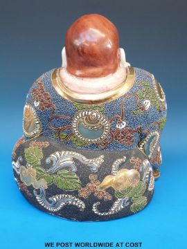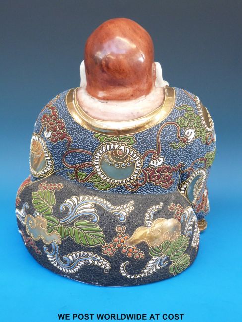 A Japanese Satsuma figure of hotei with gilt and enamelled decoration (25cm tall)