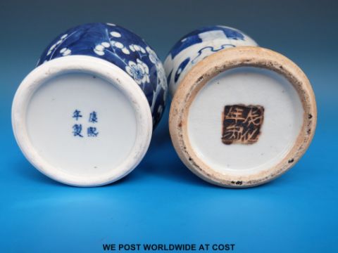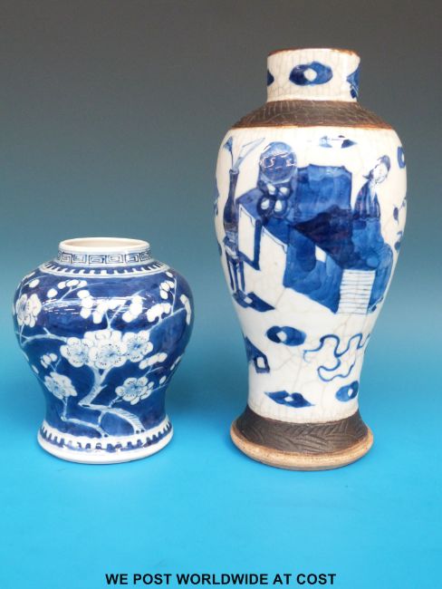 A 19thC Chinese crackle glaze vase and a prunus jar (tallest 23cm)