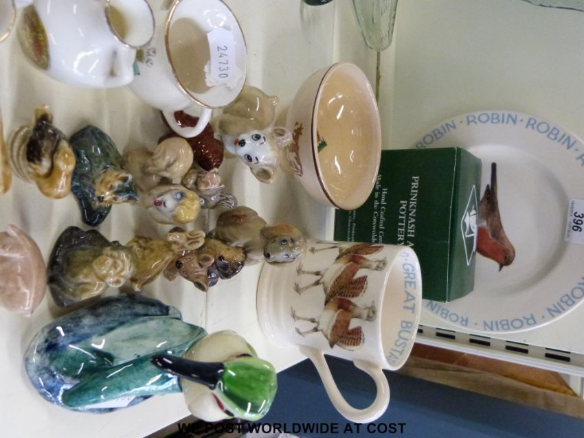 Two Emma Bridgewater Garden Birds plates Robin and Blue Tit, a Bridgwater mug 'Great Bustard', Nicholas Mosse Pottery bowl with decoration of cattle, a Prinknash pottery friends of Selsley cup and saucer, Stangl humming bird, Wade Disney animals etc