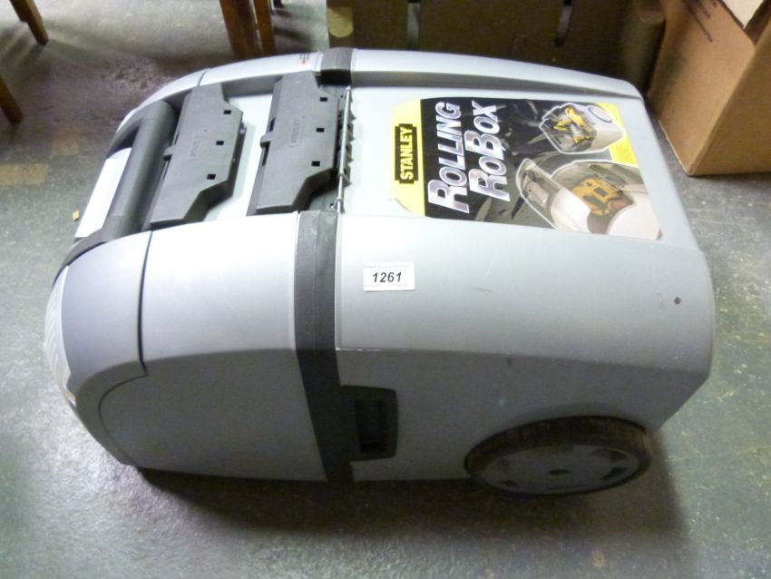 A tow bar attachment and other tools together with a Stanley rolling toolbox