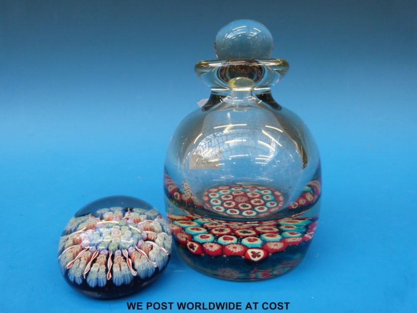 A Perthshire millefiori paperweight together with a millefiori scent bottle