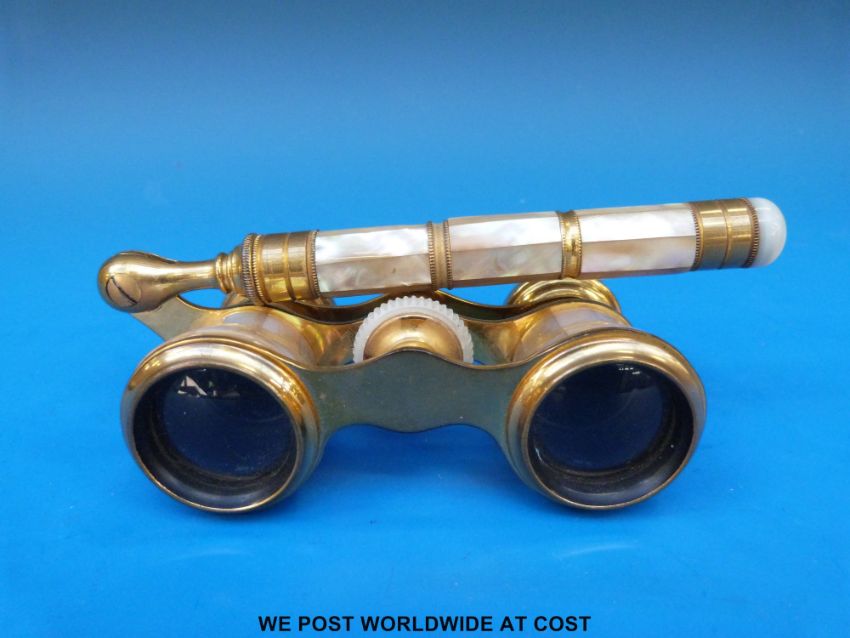 A pair of Victorian mother-of-pearl opera glasses by Iris of Paris, in original cloth case