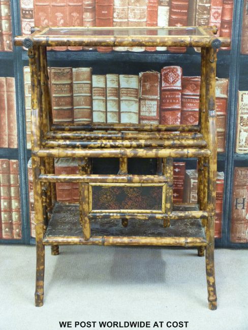 A c1900 Oriental bamboo and lacquer magazine rack and table (75 x 55 x 37cm)