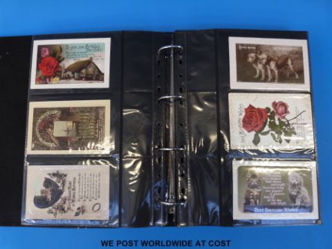 Two albums of greetings postcards together with various hold up to the light examples, card wallets etc