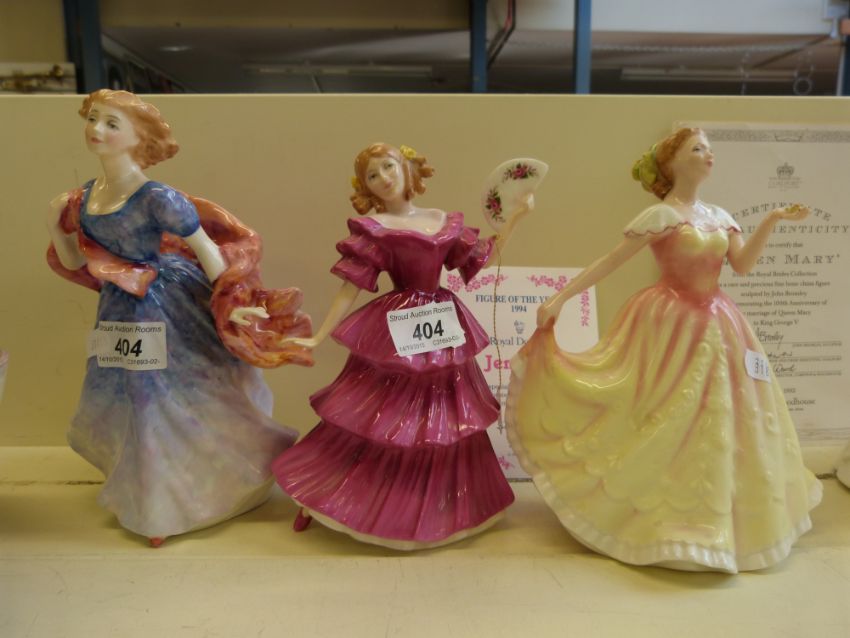 Three Royal Doulton figurines comprising two figures of the year, 'Jennifer' HN3447 1994, 'Deborah' HN3644 1995 together with 'Morning Breeze' HN3313 with certificates for the limited items