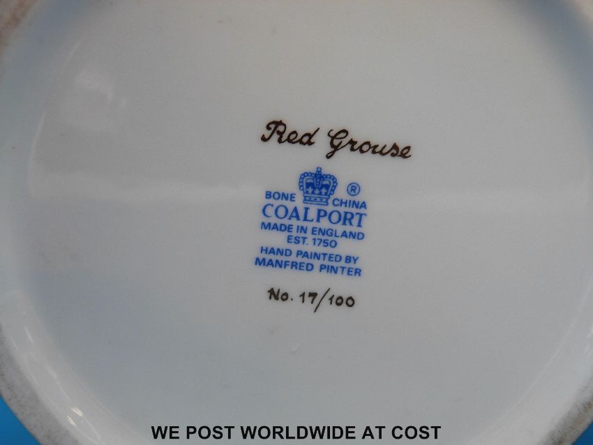 A Coalport hand-painted "Red Grouse" vase (22cm tall)