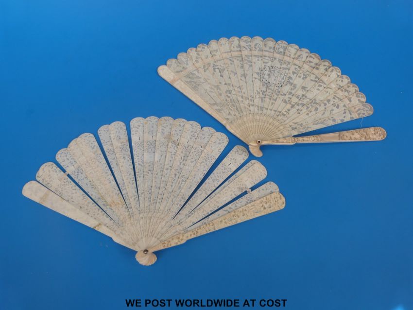 Two 19thC Chinese carved ivory brisé fans