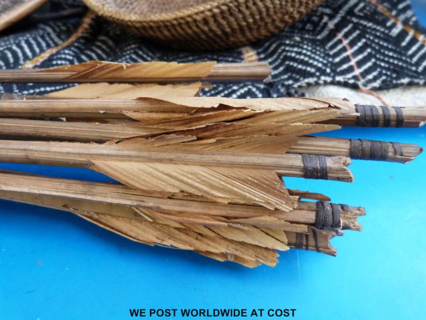 Naga Indian / Burmese tribal items including hats, clothing and a quiver with 17 arrows.